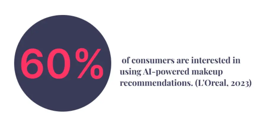 Another innovative use case in the beauty sector was announced this year at Viva Technology Paris by L’oreal. They showcased their new augmented beauty devices with cutting-edge diagnosis tools for skin and hair as well as one billion packaging units with a QR code to augment the consumer experience. 60% of consumers are interested in using AI-powered makeup recommendations. (L'Oreal, 2023)